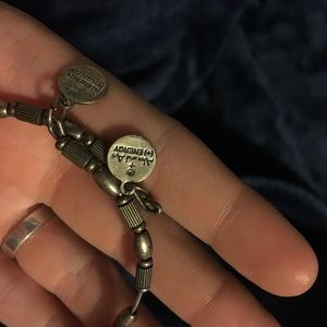 Real Alex and Ani and leather pandora bracelet. Every bead on the pandora bracelet is specifically from pandora. Little dirty they just sit in my jewelry box. Not broken they just need a good cleaning. Both together plus the beads were over $100