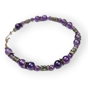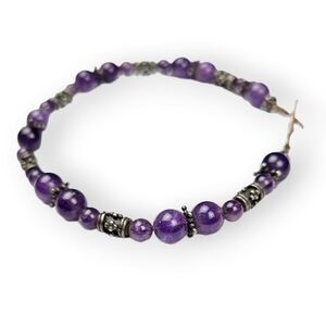 Beaded genuine amethyst antiqued silver tone strand bracelet