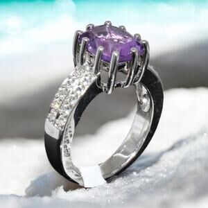 Genuine Purple Amethyst Created Sapphire Ring made of solid 925 sterling silver. Ring is a US Size 7