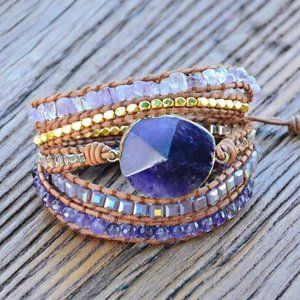 Genuine Amethyst Gemstone Genuine Leather Wrap Bracelet