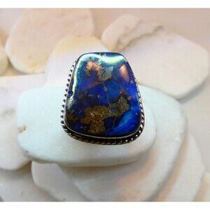 Genuine Australian Boulder Opal Sterling Silver Ring Size 7