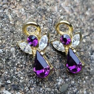 These stunning earrings feature a beautiful combination of gold and purple amethyst, rhinestones, crafted in an elegant angel design. Perfect for adding a touch of sophistication to any outfit.