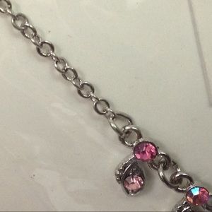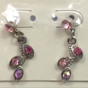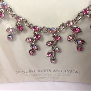 Super sparkly genuine Austrian crystal necklace & earrings set, beautiful pink color. Necklace measures approximately 6" on each side. A beautiful set, makes a perfect holiday gift!