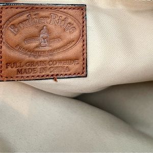 Genuine BOULDER RIDGE tan leather backpack rucksack front flap drawstring.