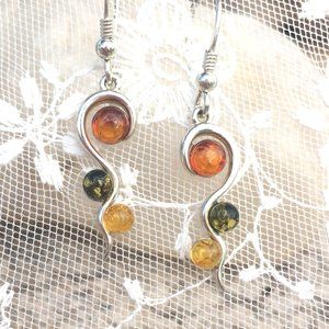 Genuine Baltic Amber Multicolor Earrings .925 Sterling Silver Swirl Design