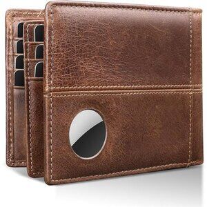 Genuine Bifold Leather Wallets for air tag Men's Wallet with 1 ID Window 15 Card