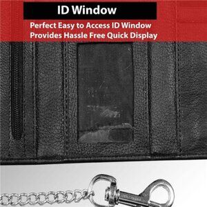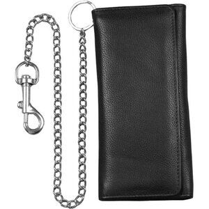 Genuine Black Cowhide Leather Chain Wallet, Trifold Long Chain Motorcycle Biker