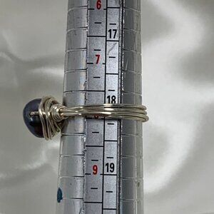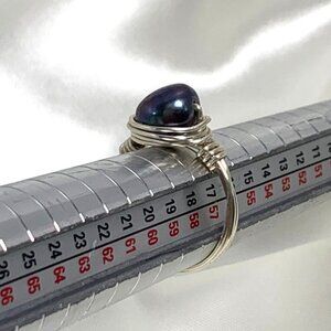 Genuine Black Pearl Ring Silver Tone Copper Wire & Black Pearl Order To Fit