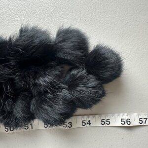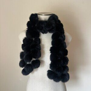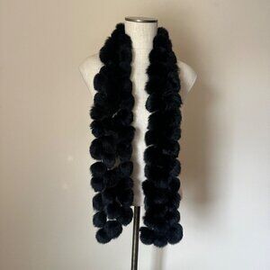 Genuine Black Rabbit Fur Pom Pom Ball Scarf Luxury Soft Old Money Glam Formal