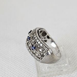 Genuine Blue Sapphire & White Zircon Art Deco Ring Sterling Silver Sz 7.5