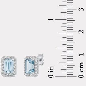 Genuine Blue Topaz 925 Sterling Silver Emerald Cut Stud Earrings in Gift Box NEW