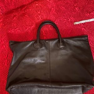 Genuine top grain black Italian leather. Genuine Bottega Venetta leather with signature nylon embossed lining. One zip compartment in the spacious interior. Very high end with added features of well made b v design. Basic handle bag with zipper . Excellent for work, papers, laptop.