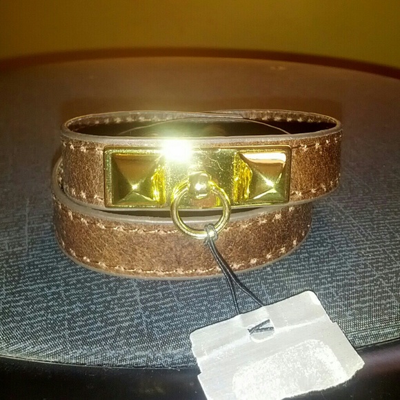 Reduced!!!! Funky/Edgy Brown leather wrap bracelet with gold details. Gold knocker and two studs. A Fantastic Bracelet!!!! Adjustable two buttons for the perfect fit around your wrist. A Great Look! Never worn.