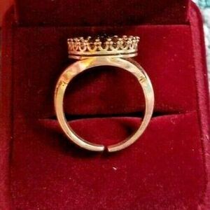 Genuine Swarovski Stone in Clear color- approx 3/4 inch in diameter, with a Silver plated brass ring base. Size 8 Adjustable.