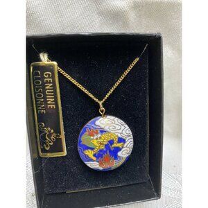 Genuine Cloisonné Dragon Pendant Necklace With Gold-Tone Chain In Gift Box