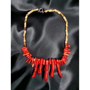 Genuine Coral Vintage Necklace With Unique Red Coral Branches