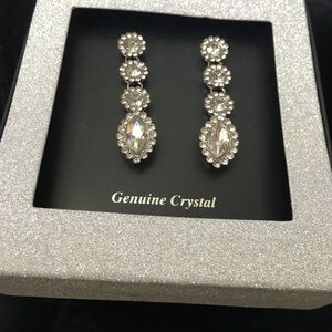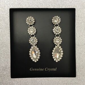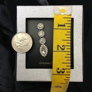 These earrings have 4 raised stones- open back design to let the light shine through for maximum reflection. 3 Round linked Daisy pieces and one Teardrop on each earring. Lightweight.