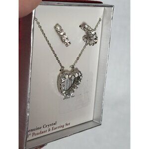 Genuine Crystal Heart Pendant 18" Necklace & Earrings Set NIB! Gift Set Diamond