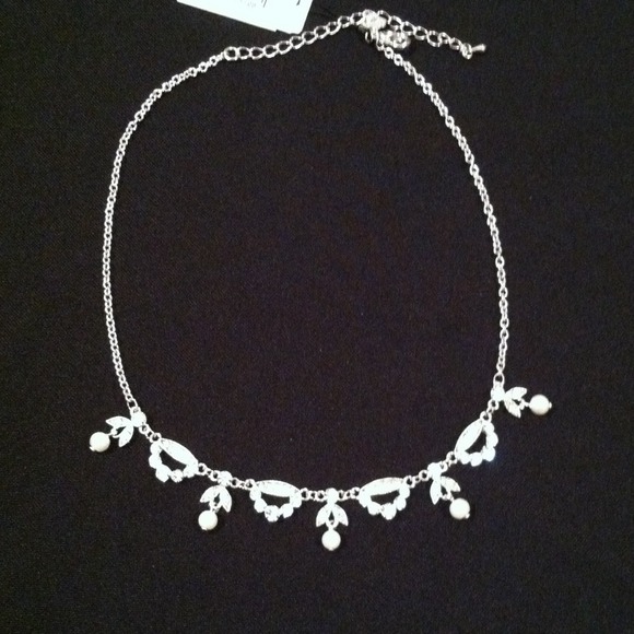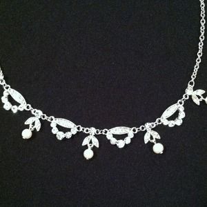This elegant genuine crystal necklace features dangling faux pearls. Adjustable chain, 16"-18". New with tag, never worn.