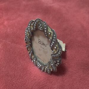 Elevate your home decor with the Crystal-Embellished Photo Frame. Featuring a stunning silver and cream design, this frame adds a touch of elegance to any room. Perfect for showcasing your cherished memories.