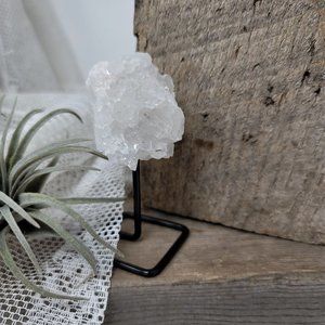 Genuine Crystal Quartz Point Cluster Metal Modern Stand