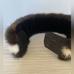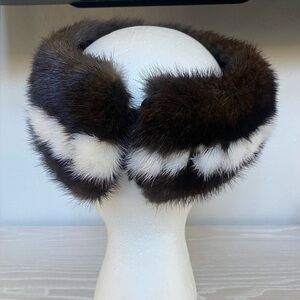 Genuine Dark Brown & White Mink Headband Collar Headwrap