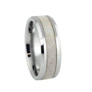 This Deer antler tungsten ring was handcrafted for stunning and unique. Surrounded by tungsten and middle with genuine deer antler inlay.