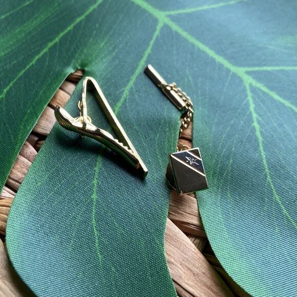 One everyday etched gold tie clip, and one special occasion tie tack with a modest genuine diamond. Both vintage 80’s