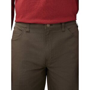 The Genuine Dickies Flex Ripstop Short in size 44 features a comfortable 11" inseam and a regular fit made from flex fabric for added flexibility and ease of movement. This chino style short is suitable for casual and workwear occasions, with a solid dark green color that exudes a classic outdoor American theme. The shorts have a zip closure, mid-rise waist, and slash pockets for added convenience. Easy to care for with machine washable instructions, these shorts are a practical and stylish addition to any man's wardrobe.