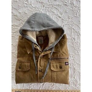 Genuine Dickies Hooded Work Jacket Brown Canvas Quilted Barn Coat 2XL (50-52)
