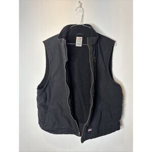 Genuine Dickies Mens Sherpa Vest Jacket Full Zip Up 100% Cotton Pockets Black XL