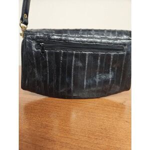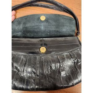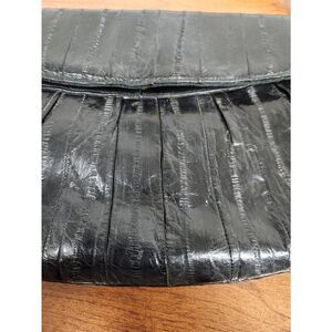Genuine Eel Skin Black Shoulder Hand Bag/ Clutch VINTAGE with suade interior