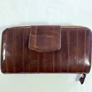 Genuine Eel Skin Wallet Copper Zip Around Organizer coin purse Vintage snap