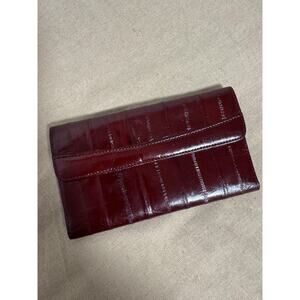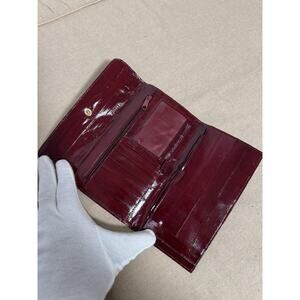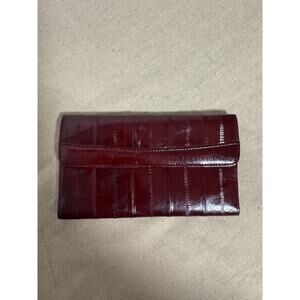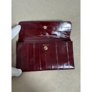 Genuine Eelskin Wallet Clutch Womens Burgundy Snap Checkbook ID Window Zip