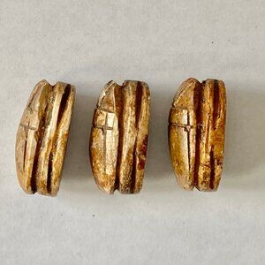 Each hand-carved piece is unique, and no two are identical. They vary slightly, and the largest is 1 1/8" long. There is a wide hole in each, which allows for using leather or other cords if you like. Due to the hand-made nature of each, there may be some slight imperfections, lending uniqueness, authenticity, the signature of an ancient relic, and a rustic look.