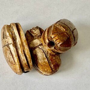This sale is for a lot of 3 earth-tone, beige, tan, brown scarab beads. These are carved out of soapstone or steatite, a soft stone that becomes hard when fired (forming enstatite). They are also all glazed.