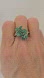 Beautiful vibrant emeralds are set in a sterling silver setting, rhodium treated. The emeralds branch out in a lovely cluster of marquise shapes. It sits comfortably on the finger and will captivate anyone who looks at it. It's approximately 3.5 carats. Size 8