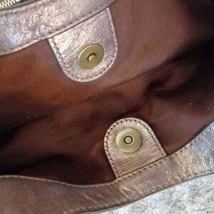 Excellent condition. Shimmer & shine with this amazing crossbody bag. Big enough to fit ALL your belongings. Easy to carry, use as a handbag or crossbody. Crossbody strap is adjustable. All hardware in pristine condition, no rust or discoloration. Exterior has 2 zippered front pockets & 1 large zippered back pocket. Interior has one zippered pocket and two slip pockets.