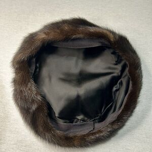 Genuine fur beret, possibly mink, lined, grosgrain ribbon rimmed, elegant, vintage, retro