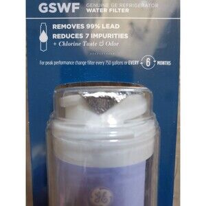 This genuine GE SmartWater Refrigerator Filter GSWF replacement cartridge is a must-have for any household. The water filter is compatible with GE filters and is made of durable ABS plastic. It comes in a sleek white color and has a height of 5.1-10 inches and a depth of 1-5 inches. The item weighs 1.16 pounds and is suitable for use with household appliances. The model is GE GSWF and is compatible with an unsure model. This water filter is perfect for anyone looking to purify their drinking water.