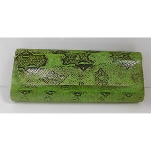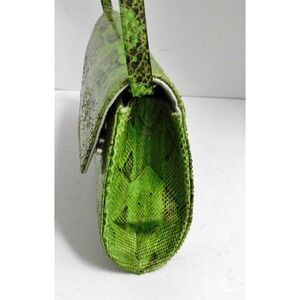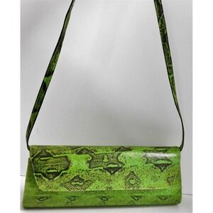 Green and black genuine watersnake skin east west 2 way clutch shoulder bag.