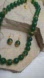 This stunning green emerald beaded necklace and earring set is perfect for adding a touch of elegance to any outfit. The vibrant green beads are complemented by gold accents, creating a sophisticated look.