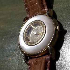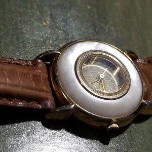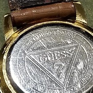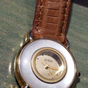 Genuine Guess Watch Retro Mother of Pearl Face Rim and Leather Band Watch Working