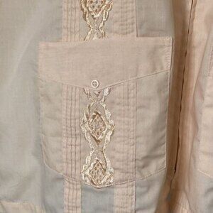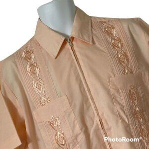 Genuine Haband Men's Guayabera Shirt Medium Peach 4 Pocket Full Front Zip