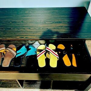 This product is a pair of handmade men's sandals in brown leather, available in size 8. The sandals feature slip-on closure, tasseled, quilted and embroidered accents, and a rubber outsole. They are waterproof, lightweight, non-slip, breathable, insulated, water-resistant, lined, cushioned, slip-resistant, and comfortable. The sandals also have hidden heels, glow in the dark, and reflective features. They are suitable for casual occasions in summer, fall, and spring. The sandals are part of the Goldfinger Accessories product line and are made in the United States.