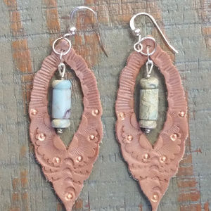 Genuine Handtooled Leather Earrings with Gemstones