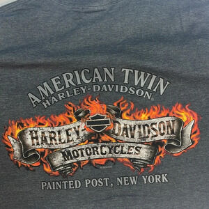 American Twin Harley Davidson/Painted Post,New York (2011) Pre- owned/ good condition Size 2X measurements Across the chest 24 1/2” length 31” sleeves 9”