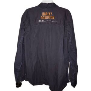 The Genuine Harley-Davidson 115 Years Garage Long Sleeve Shirt is a commemorative piece celebrating the iconic brand's history. Featuring the classic Harley-Davidson logo embroidered on the front, this shirt is a must-have for any avid collector or enthusiast.