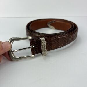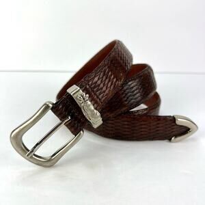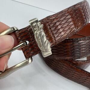 Genuine Italian Calfskin Leather Brown Classic Men's Silver Golf Accent Belt 36