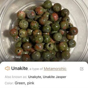 Unakite is a newly-found semi-preciostone, it was first found in the United States in the Unaka mountain range of North Carolina from which it gets its name. It is a metamorphic rock that gets its pink and green coloration from its mineral content. It is popular craft jewelry material for creating beads, small sculptures, tumbled stones, or ornamental items. Its potential to show wear keeps it from use in fine jewelry.